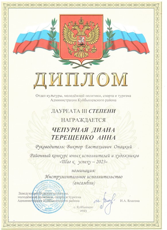 Этой весной среди образовательных учреждений проходил районный конкурс юных исполнителей и художников «Шаг к успеху – 2023», целью которого были развитие музыкально – исполнительской культуры юных музыкантов.