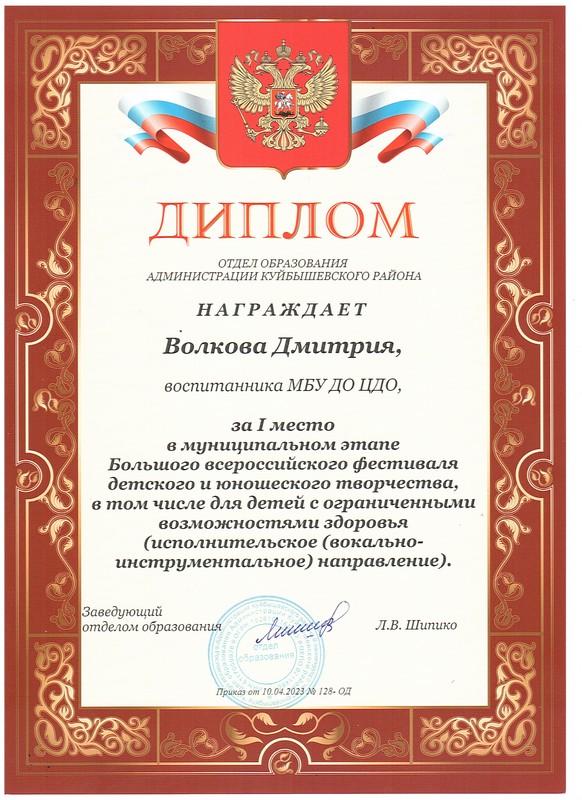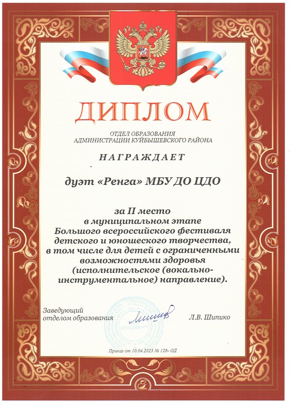 В апреле месяце этого года отделом образования Администрации Куйбышевского района проводился муниципальный этап Большого всероссийского фестиваля детского и юношеского творчества.