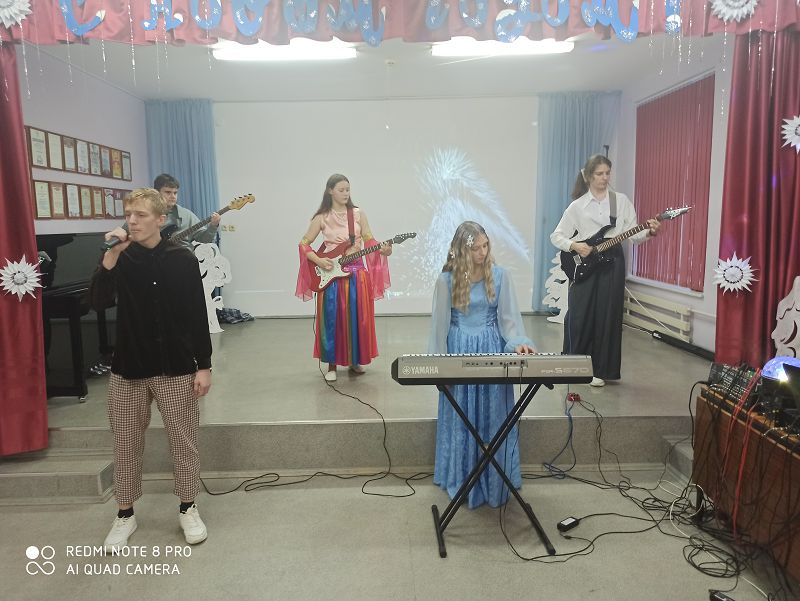 Воспитанники детского объединения «Аккорд» приняли активное участия в празднике. ВИА «Веселые ребята» и ВИА «Крылья» подготовили номера для праздничного концерта. Младшие школьники исполнили новогоднюю песню «Тик – так». Ребята активно участвовали в играх и конкурсах.