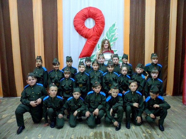 7мая 2017г. фотоснимок с праздничного концерта посвященного 72-ой годовщине Великой Победы. ЛСДК на фото руководитель коллектива Т.Ю.Кузьмина и ребята средней и младшей групп.Танцевальный номер"Пилоты".