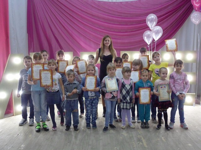 16 ноября 2017г. Отчётный концерт коллектива "Импреса". На фото ребята младшей группы со своим руководителем.