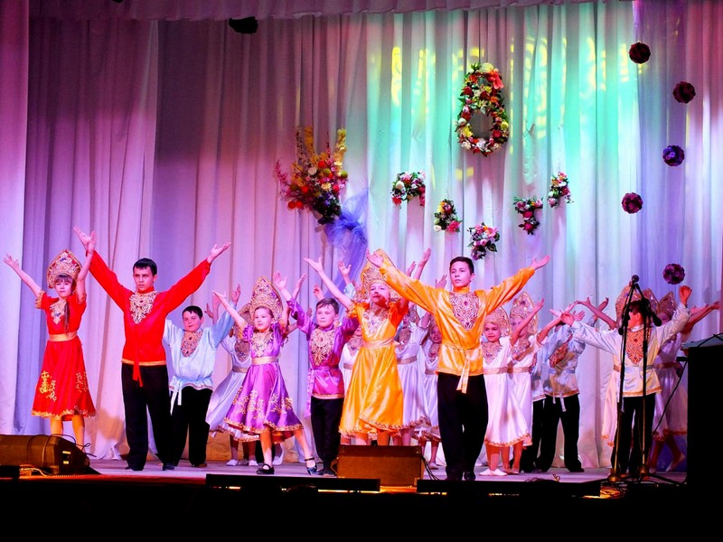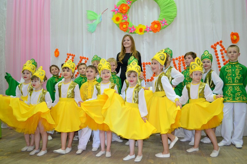 6 марта 2017г. фотоснимок с концерта посвящённому Международному женскому Дню. На фото руководитель коллектива Т.Ю.Кузьмина и ребята средней и младшей групп.Танцевальный номер "Русская Душа".