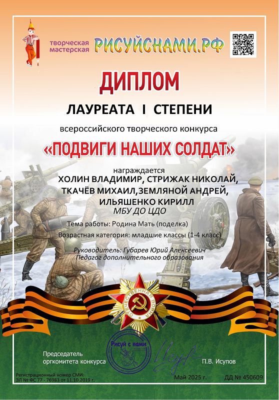 Победителями всероссийского творческого конкурса "ПОДВИГ НАШИХ СОЛДАТ" стали воспитанники детского объединения "Вирус" с работой в стили паперкрафт "Родина Мать".