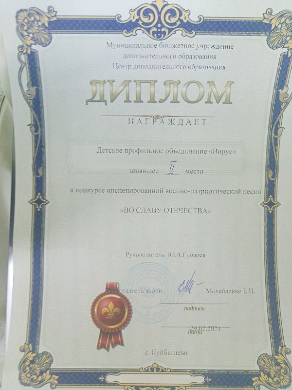 Детское объединение "Вирус" заняло второе место в конкурсе инсценированной песни «ВО СЛАВУ ОТЕЧЕСТВА».