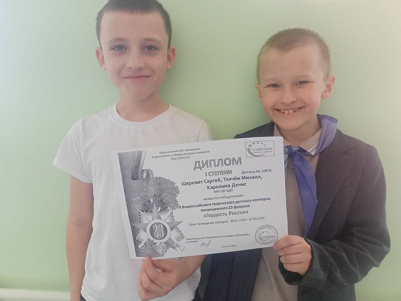 Победители I степени II Всероссийского творческого детского конкурса, посвященного 23 февраля "Гордость России" Конкурс проходил 10.02.2025 - 07.03.2025