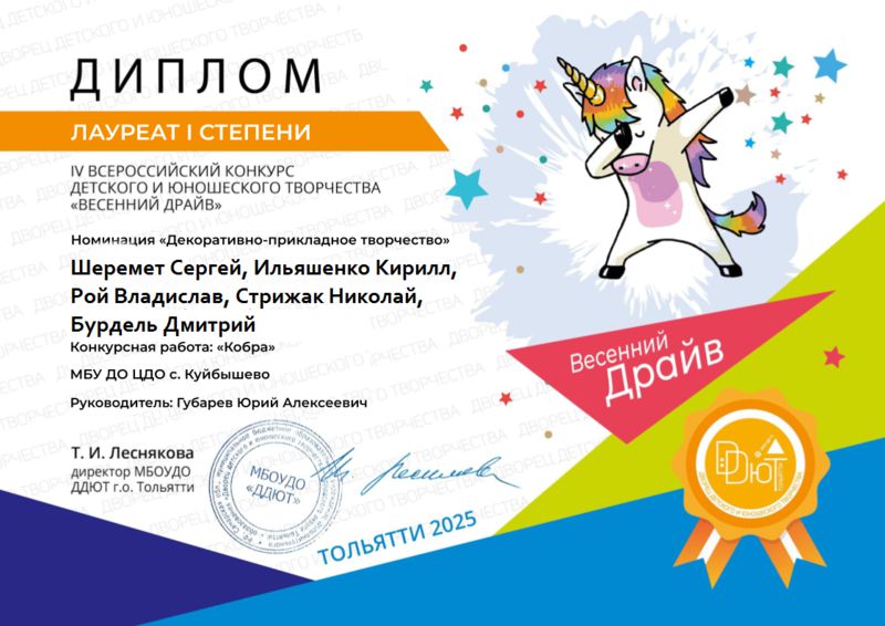 Победители Всероссийского конкурса детского и юношеского творчества "Весенний Драйв" в номинации "Декоративно - прикладное творчество" в стили паперкрафт.