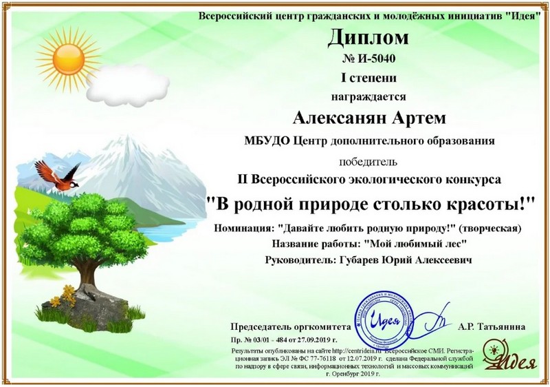 Дипломантом 1 степени стал Алексанян Артем с работой «Мой любимый лес»