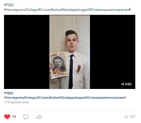 Российская общественная организация Российское Движение Школьников в преддверии Юбилея Победы организовало конкурс стихов о Великой Отечественной войне «Наследники Победы».
