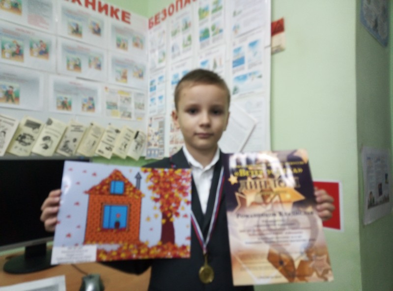 Романенков Владислав «Осенний дом» возрастная категория 10-11 лет номинация «Художественное мастерство» награжден Дипломом Лауреата 1 степени