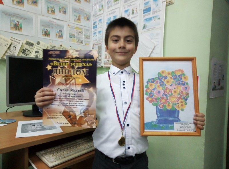 Скляр Матвей «Цветы для мамы» возрастная категория 6-7 лет номинация «Художественное мастерство» награжден Дипломом Лауреата 1 степени