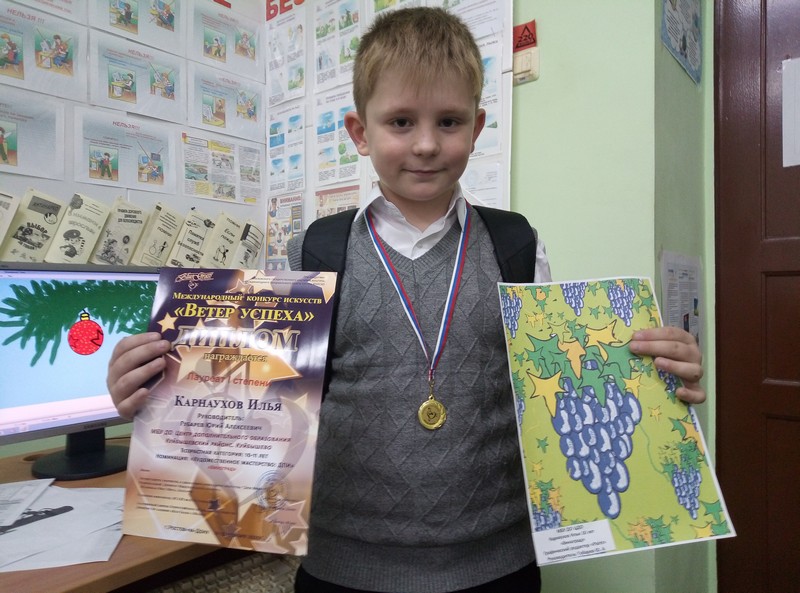 Карнаухов Илья «Виноград» возрастная категория 10 -11 лет номинация «Художественное мастерство» награжден Дипломом Лауреата 1 степени