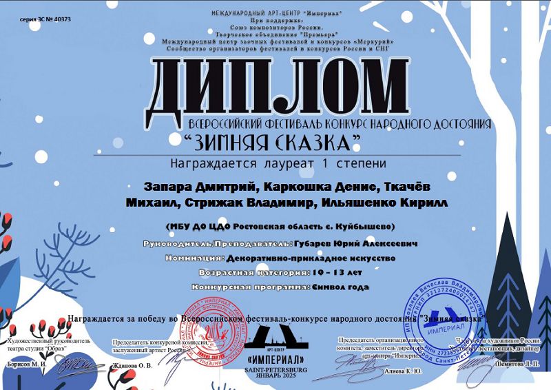 Международный конкурс фестиваль "Донская жемчужина" проходил 1 декабря 2024 года. Воспитанники детского объединения "Вирус" стали победителями в номинации: Художественное мастерство Декоративно-прикладное искусство: