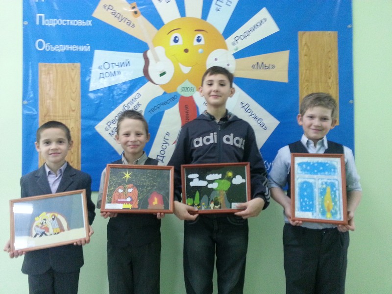 Попов Виталий с работой «Иисус» стал одним из победителей Районного конкурса детского прикладного творчества «В мире добра» Остальные ребята кружка «Вирус» которые представили свои работы на конкурс получили сертификаты участника.