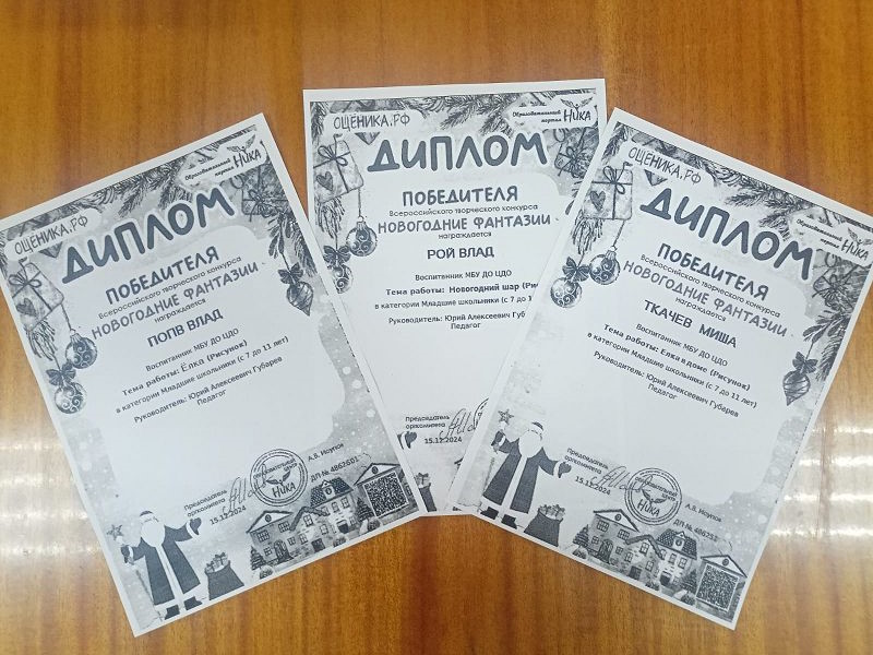 Попов Влад, Ткачев Михаил, Рой Влад стали победителями всероссийского творческого конкурса "Новогодние фантазии".