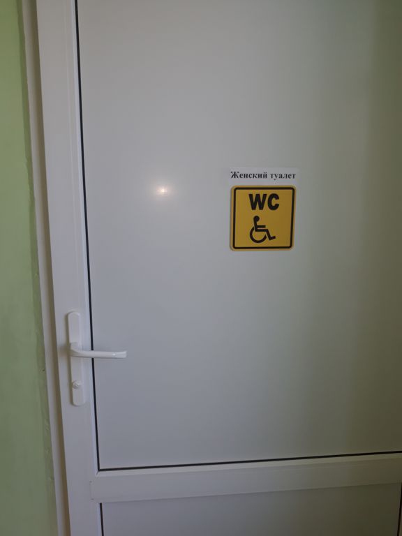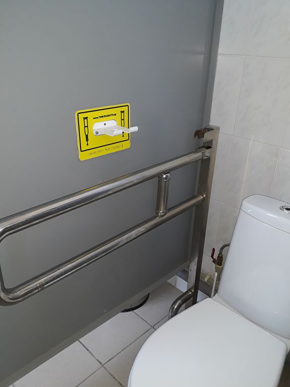- в помещении туалета – оборудована кабинка для инвалидов, в которой имеется тактильная пиктограмма со шрифтом Брайля, кнопка вызова помощи персонала, аварийное освещение;