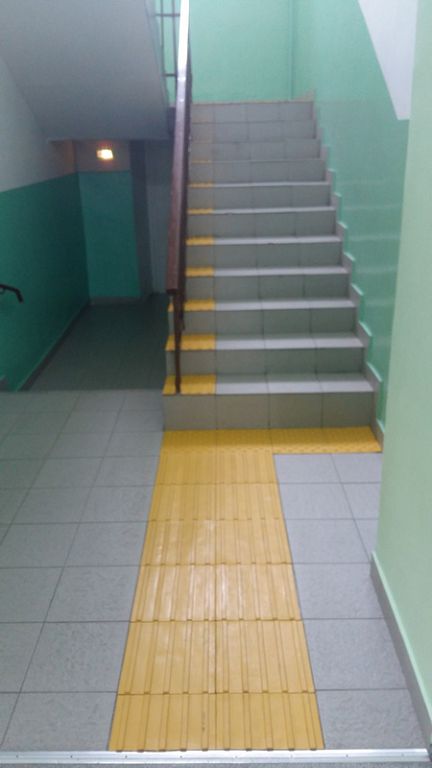 - перед ступеньками и на ступеньках на 2 этаж – резиновая тактильная плитка;