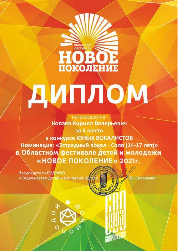 Областной онлайн- фестиваль творчества детей и молодёжи «Новое поколение» проводился по инициативе Ростовской региональной детско-молодёжной общественной организации «Содружество детей и молодёжи Дона» при поддержке Комитета по молодежной политике Ростовской области.