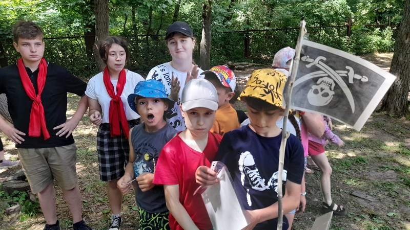 Для каждого отряда вожатые соорудили импровизированные корабли для каждого отряда. У каждого отряда на мачте реет веселый Роджер, каждый отряд ждут приключения, пиастры и нешуточные препятствия в борьбе за сокровища.