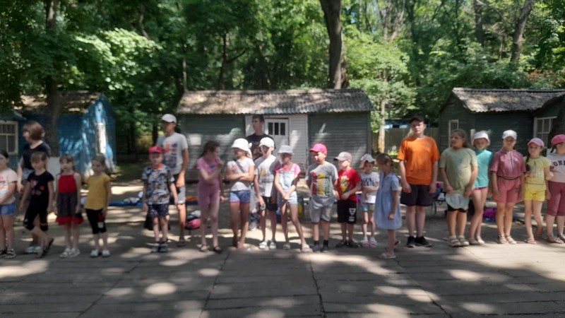 На главной поляне турбазы «Миус» детей встретил повелитель всех морей и океанов – Нептун, по совместительству вожатый 5 отряда Кирилл Копаев.