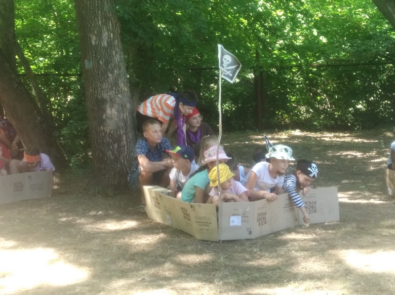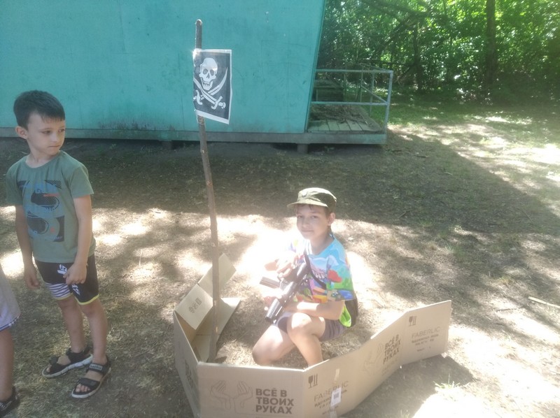 Для каждого отряда вожатые смастерили корабли и украсили их пиратский флагом, Веселым Роджером. В развлекательную программу входило много интересных и творческих заданий: