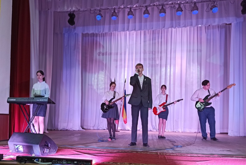 Воспитанники профильного объединения «Аккорд» Центра дополнительного образования приняли участие в конкурсе. Вокально-инструментальный ансамбль «Аккорд» выступил с песней из репертуара группы «Любэ» «Солдат».
