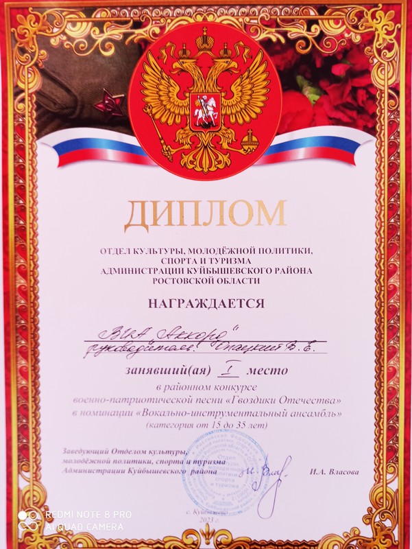 Состав ВИА «Аккорд»: вокал – Копаев Кирилл, синтезатор - Чепурная Диана, бас-гитара – Крахмалев Тимур, соло-гитара – Марокова Валентина, ритм-гитара Терещенко Анна.