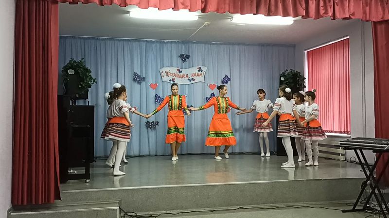 25 ноября в Центре дополнительного образования состоялся концерт, посвященный самому дорогому человеку в нашей жизни – Маме. В нем приняли участие воспитанники трех детских объединений: танцевального коллектива «Дружба», детского объединения «Солнечный круг» и студии «Аккорд». В программе танцевального коллектива «Дружба» были танцы: «Испанский танец», «Матросский», «Казачий», «Русский», «Татарский» и «Вальс». «Солнечный круг» исполнил песни о маме.
