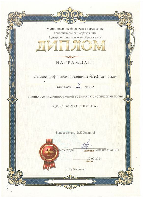 В этом конкурсе приняло участие и наше детское объединение «Веселые нотки» с песней «Шли солдаты на войну». Мальчики шагали на сцене, а девочки пели песню. По решению компетентного жюри наше объединение заняло 2 место.