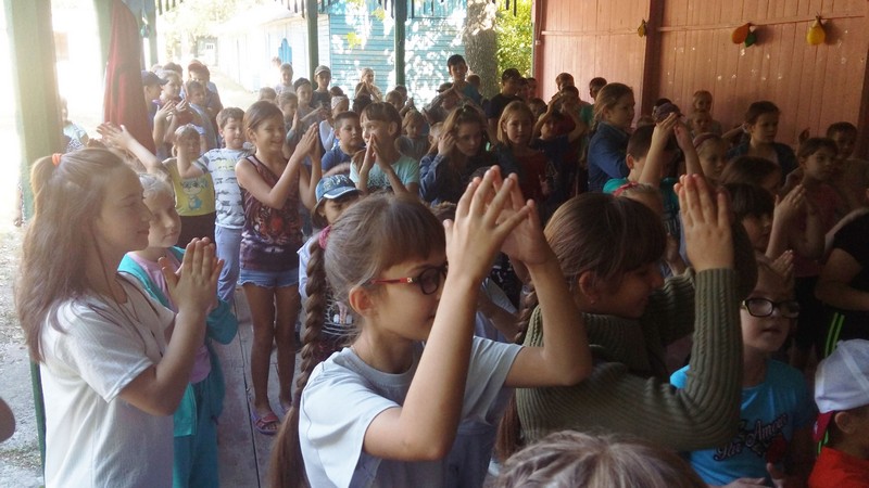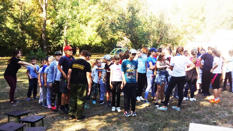 Территория турбазы «Миус» гостеприимно приняла всех 100 ребят. Дети спешили поскорее скинуть рюкзаки и приступить к путешествию по маршрутным листам, подготовленным вожатыми.