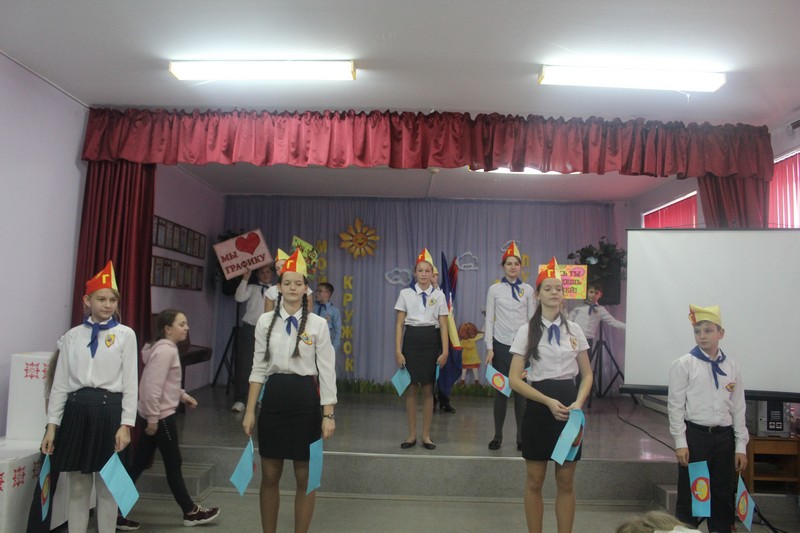 Под знаменами кружка "Компьютерная графика" вышло 15 человек. Все они долго готовились и переживали перед выступлением. Репетиции не прошли даром, зажигательная песня зарядила отличным настроение весь зал. А презентация о кружке показала, насколько ребята сплотились и сдружились на кружке.