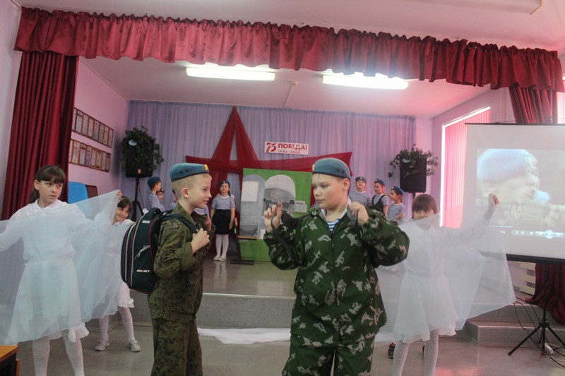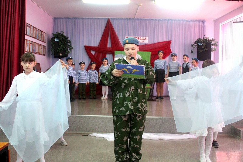 Праздник – конкурс открыли воспитанники старшей группы детского сада «Колокольчик» театрализованным танцем «А закаты алые». А первыми представили свой номер воспитанники профильного объединения «Мелодия цвета». Коллектив этих ребят очень разновозрастной, от 5 до 12 лет, но это не помешало команде подготовить оригинальную инсценировку о десантниках. Следующий конкурсный номер представили обучающиеся детского объединения «Дружба» в виде необычной танцевальной композиции со свечами на основе Ленинградской симфонии и песни «Бухенвальдский набат». Ребята из профильного объединения «Вирус» исполнили песню «Бессмертный полк» вместе с почетным гостем председателем Совета ветераном И.А. Копайгора. Воспитанники кружка «Веселые нотки» вновь порадовали гостей конкурса живым инструментальным исполнением в то же время, когда разворачивалось действие их инсценировки «У деревни Крюково». Завершила конкурсную программу объединенная команда из профильных объединений «Солнечный круг», «Азбука здоровья» и «Забава» запоминающейся литературно-музыкальной композицией «Травою заросли давно воронки». Между конкурсными номерами звучали стихи и прозаические тексты в исполнении юных чтецов Белоусова Антона и Копаева Кирилла.