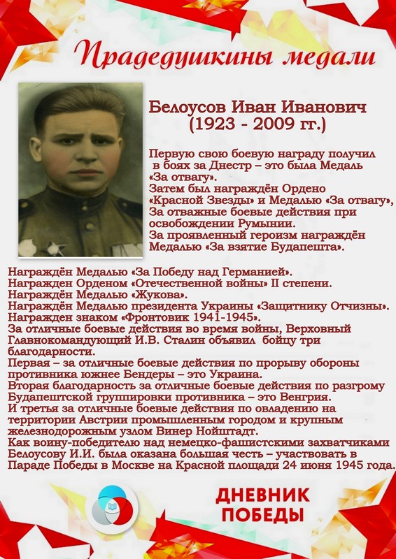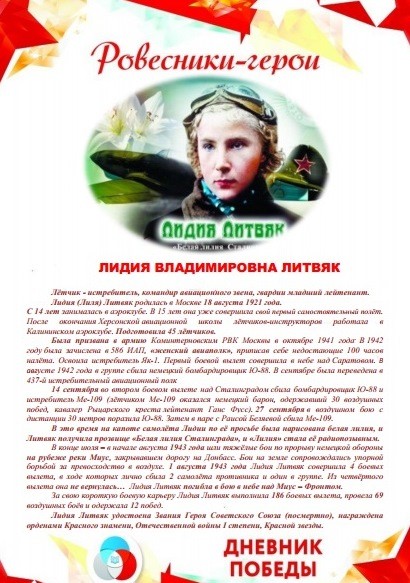 Под руководством педагогов Центра дополнительного образования В.Б. Роменской, Е.Н. Кучиной, Т.В. Рыжовой, Ю.А. Губарева, Т. В. Першиной, В.П. Козловской активистами ДПО «Радуга» были систематизированы материалы для оформления 10 тематических листов активности «Дневника Победы».