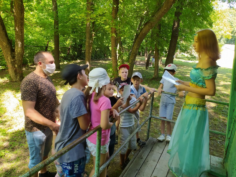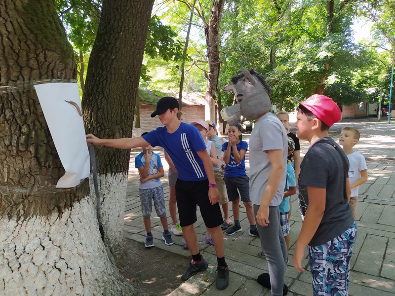 После бодрящей разминки и питательного завтрака ребята собрались на территории оздоровительной площадки «Миус» под сенью прохладной зелени. После переклички отряды получили маршрутные листы и отправились путешествовать по станциям. На станциях участников ждал волшебный сюрприз – вожатые ЦДО перевоплотились в героев известных и любимых мультфильмов: Жасмин (Рычко Ульяна), Осёл (Штенский Виктор), Малифисента (Кучмиёва Елизавета), Белоснежка (Терюкалова Маргарита), Моана (Кучина Анна), Аид (Шнайдер Андрей), Шрек (Назарько Кирилл), Гектор (Васильев Максим), Маша (Гусейнова Серафима), Пинки Пай (Тарасова Софья). Вместе со сказочными персонажами ребята вспоминали песенки из мультфильма «Барбоскины», разгадывали сканворды «Лунтика», считали с героями мультфильма «Три кота», отгадывали ребусы «Фиксиков» и еще много-много всего интересного.