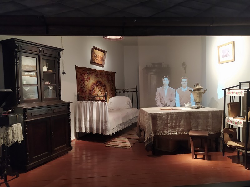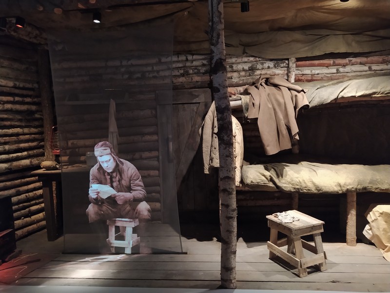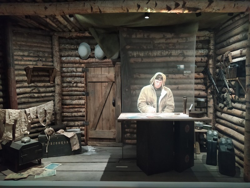 Наша экскурсия началась с посещения музея, оснащенного мультимедийным оборудованием с видео и аудиоэффектами, воспроизводящим фрагменты тех исторических событий: быт предвоенного Таганрога, уклад жизни в Германии, который привел к войне, бои на Миус-фронте. Мы подолгу останавливались у блиндажей советских и немецких солдат с личными вещами воинов и оружием, которое собрали в местах боев.