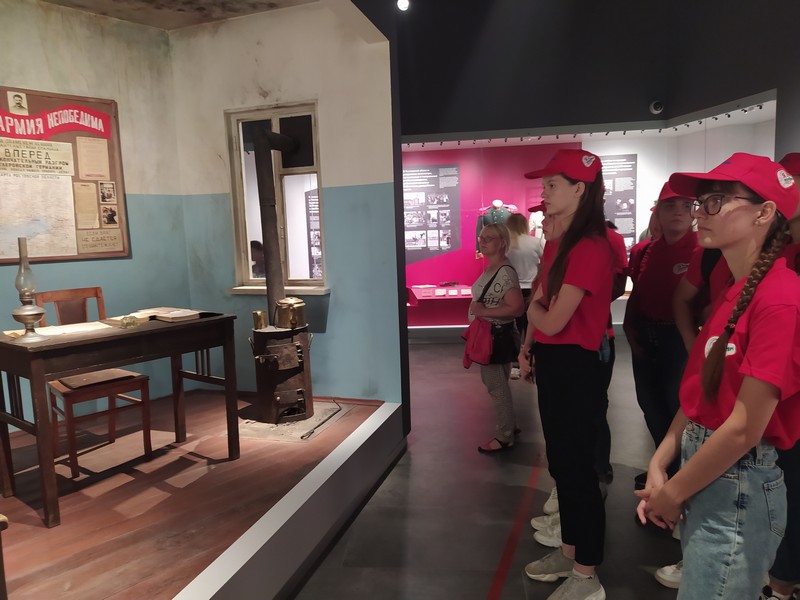 На открытой площадке мемориала посетили макеты техники времен войны, стелу «Журавли», памятник советскому солдату, часовню с незабываемым блеском бассейнов «Реки жизни», где вода кристально прозрачна, как слезы оплакивающих погибших героев. Особое внимание ребят привлек самолет ЯК – 1Б легендарной советской летчицы-истребителя Литвяк Лидии Владимировны, погибшей на границе Куйбышевского района.