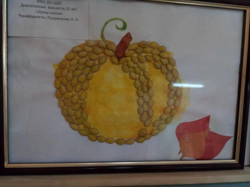 - Кашина Злата, 6 лет «Осень, аппликация из семян» Полянская Н.А.