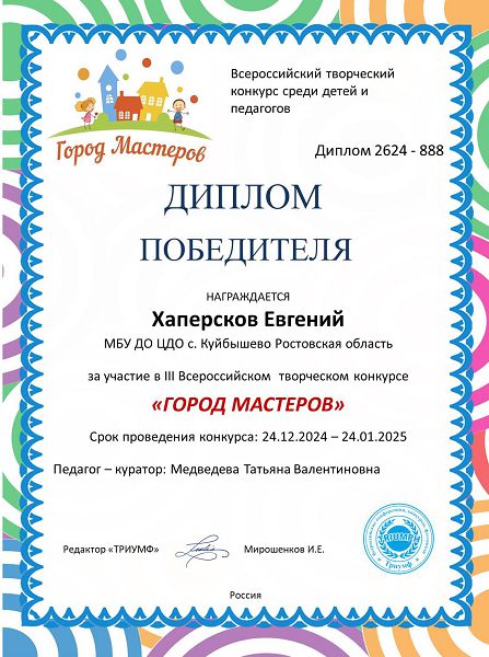 Подведены итоги III Всероссийского творческого конкурса среди детей и педагогов "Город мастеров".