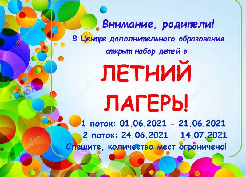 Во исполнении приказа отдела образования Администрации Куйбышевского района № 1 - ОД от 12.01.2021 «О мерах по подготовке и открытию лагерей с дневным пребыванием детей в период весенних каникул», а так же в целях создания оптимальных условий для полноценного отдыха, оздоровления, занятости детей и подростков в период весенней оздоровительной кампании 2021 года на базе Муниципального бюджетного учреждения дополнительного образования Центра дополнительного образования в период весенних каникул с 22.03.2021 по 26.03.2021 года будет организован лагерь с дневным пребыванием детей.